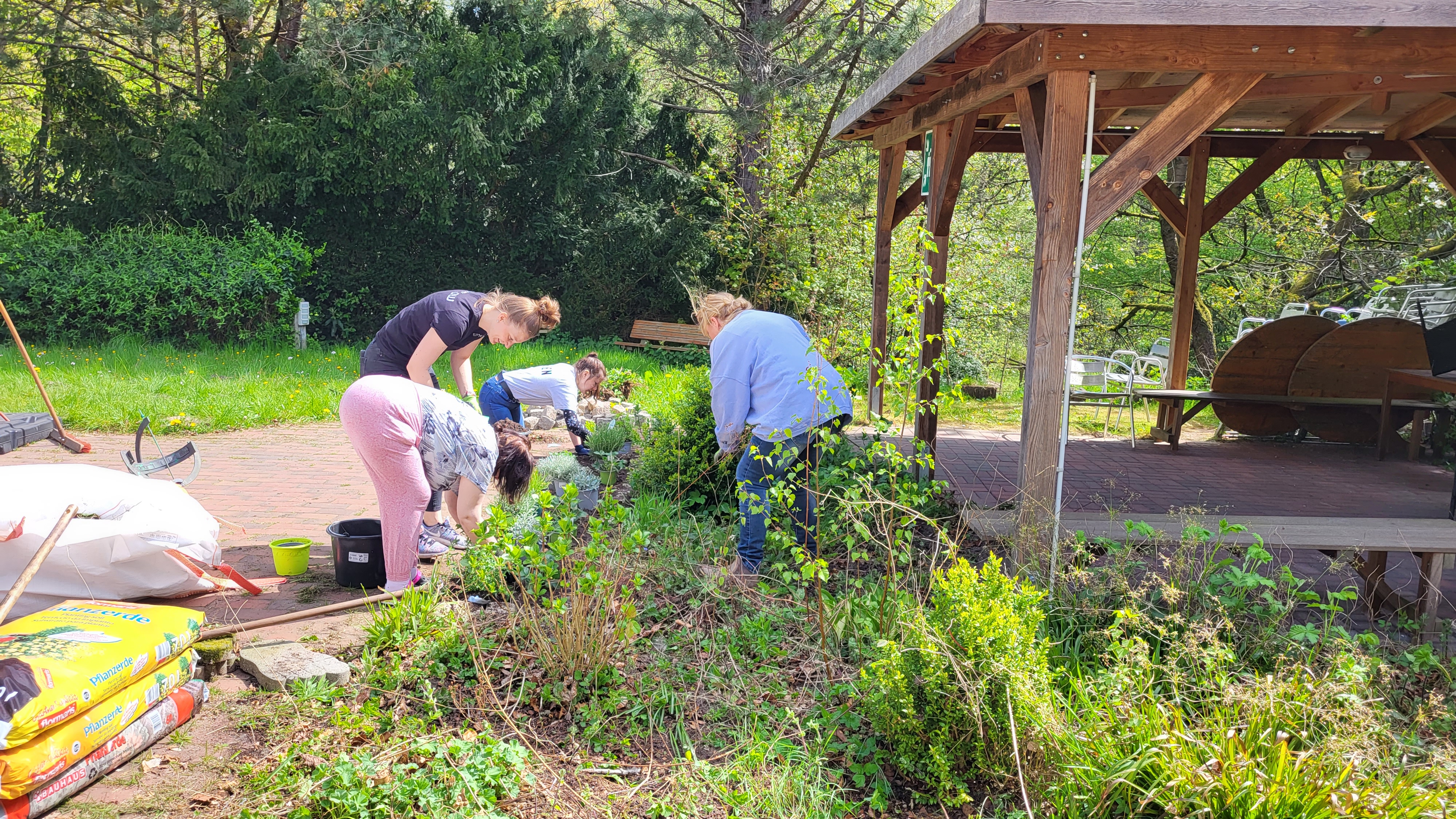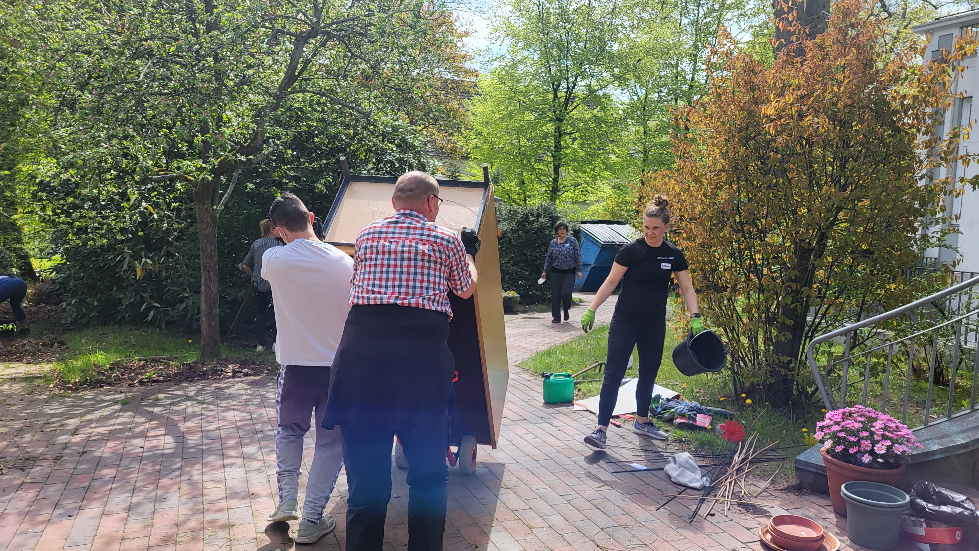 Die Teams wurden tatkräftig von den Bewohnerinnen und Bewohnern unterstützt, so dass es für beide Seiten eine neue Erfahrung war. Zur Motivation beigetragen hat sicherlich auch das sonnige Wetter, das auch noch für gute Laune und jede Menge Tatkraft gesorgt hat.