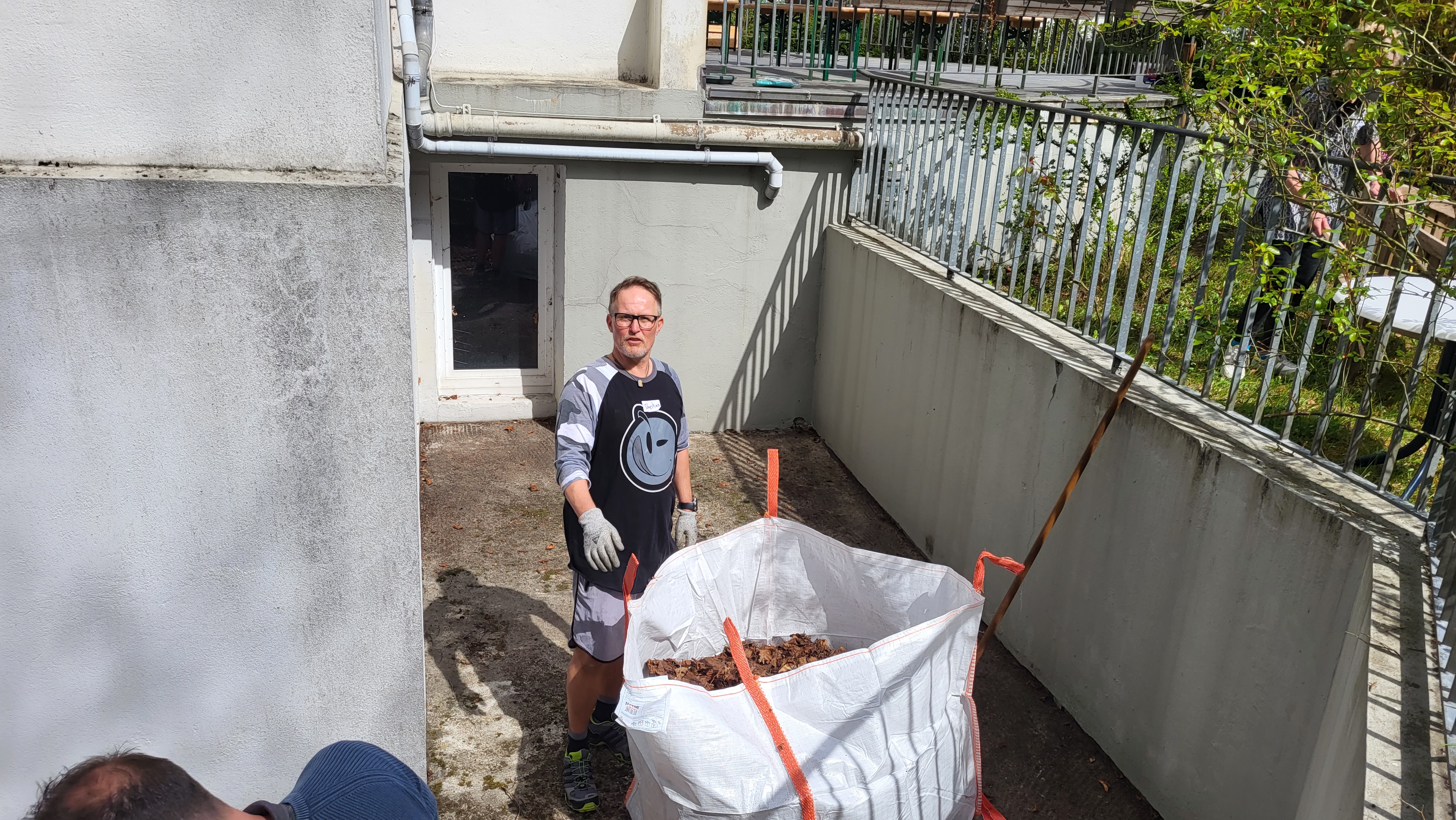 Team 3 war zur Entrümpelung von Keller und Garten im Hinblick auf den bevorstehenden Umzug eingeteilt, was sich als große Herausforderung für einige Helfer*innen herausstellte. Alte und kaputte Möbel und Sperrmüll mussten aus dem Keller des ehemaligen Gutshauses raufgetragen und zum Container getragen werden. Wäre kein Wunder, wenn einige danach Muskelkater hätten, denn das war Schwerstarbeit.