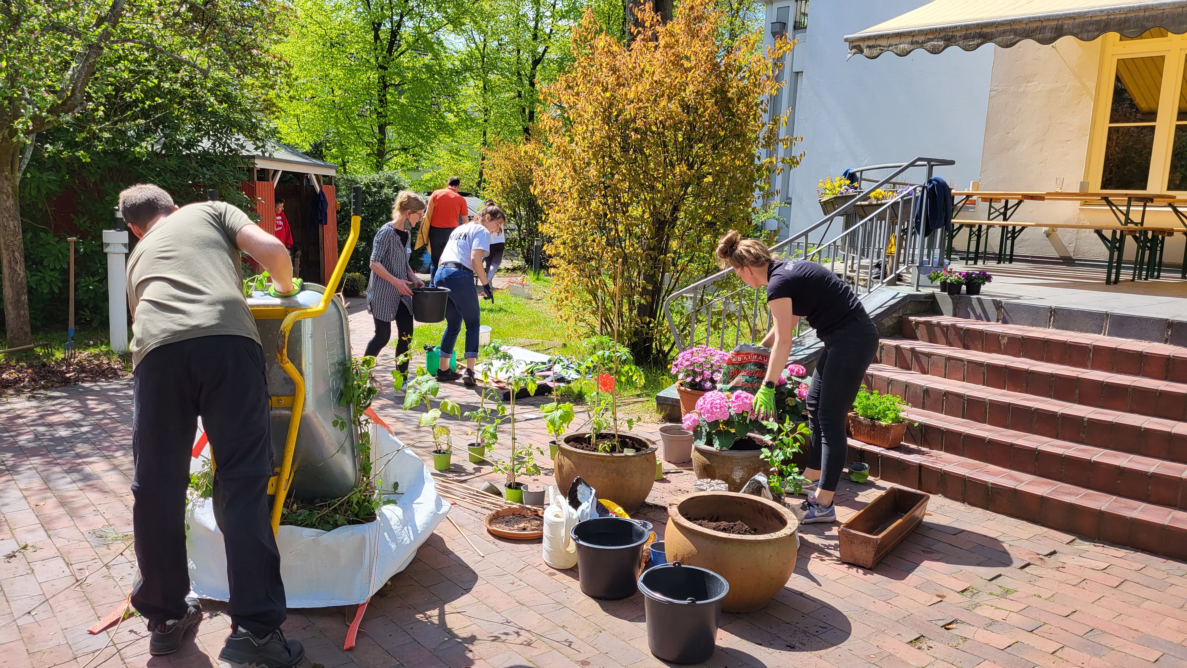 Die Verantwortlichen des Hauses waren jedenfalls begeistert von dem Einsatz und vor allem von dem Ergebnis nach fünf Stunden Körpereinsatz. Am Ende gab es noch für jede*n eine Rose als Dank für das großartige Engagement.